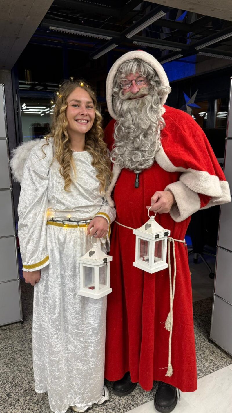 Wenn man genau hinsieht kann man unseren Sousaphonisten Réne (Quirli) mit seinem Engel (Tochter Lena, Trompeterin) erkennen.